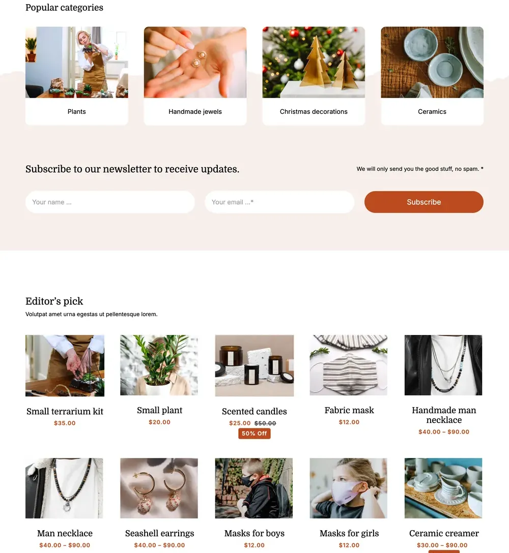 Handmade Shop Website Design with Free VPS Web Hosting