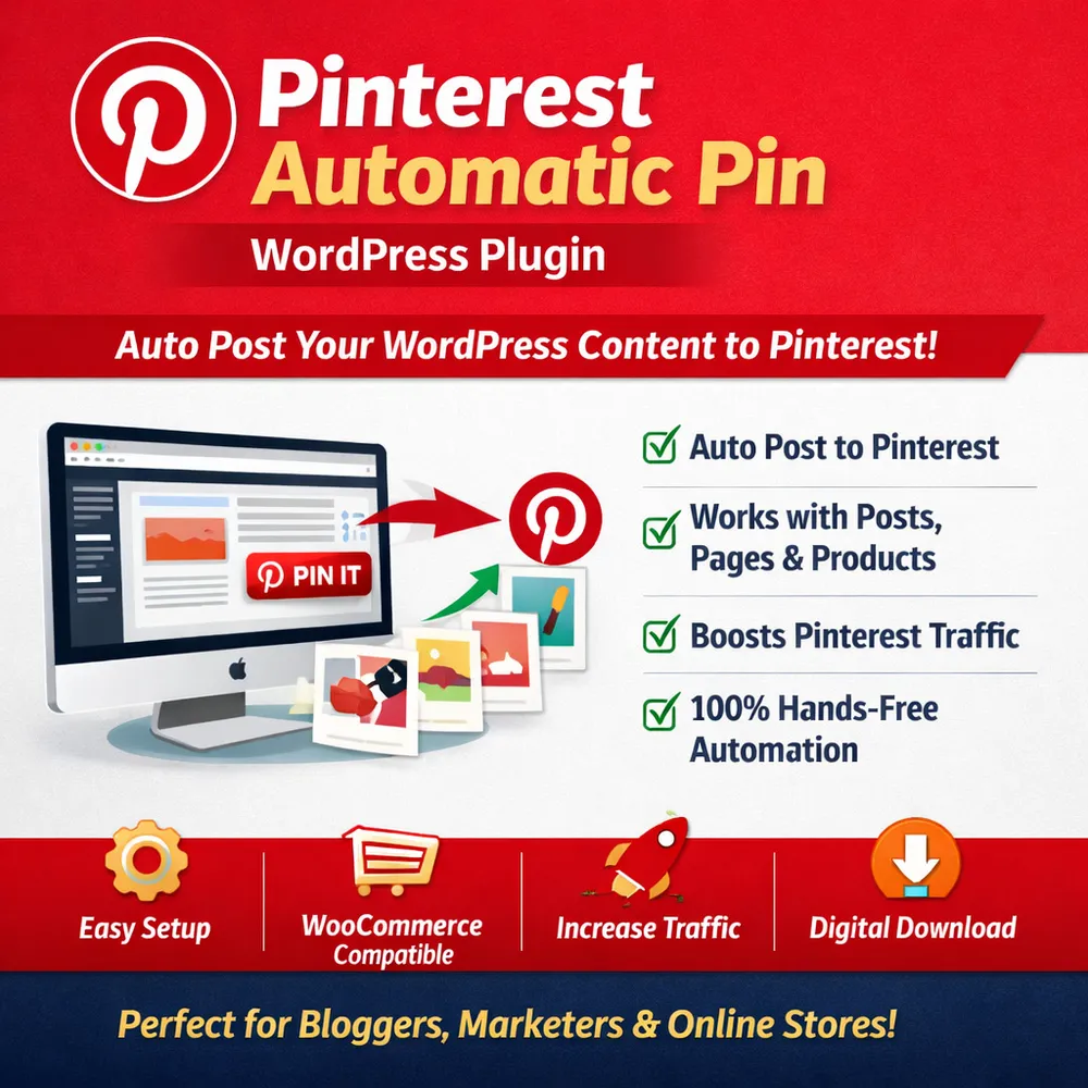 The Pinterest Automatic Pin WordPress Plugin instantly shares your WordPress posts, pages, and WooCommerce products to Pinterest as soon as you publish them.