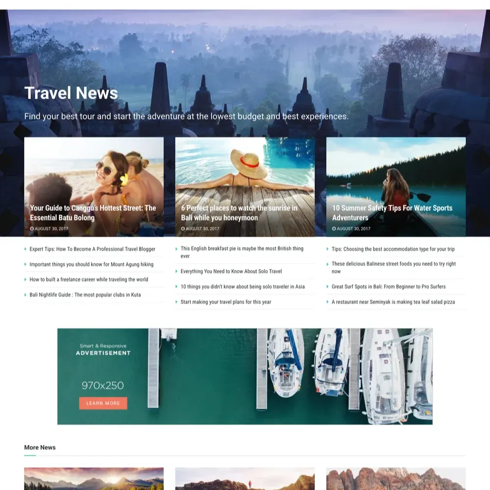 Travel Magazine Website Design with Free VPS Web Hosting